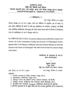 अतिरिक्त महाधिवक्ता के रूप में कार्यरत विवेक शर्मा छत्तीसगढ़ के महाधिवक्ता बनाये गएमहाधिवक्ता प्रफुल्ल कुमार भारत का...