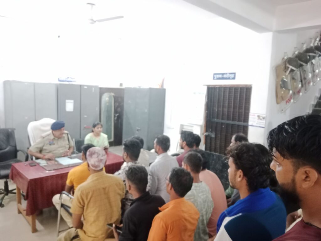 मस्तूरी ।थाना परिसर में शनिवार को गणेश चतुर्थी पर्व को लेकर थाना क्षेत्र के सभी डीजे संचालक के साथ बैठक की गई. इस बैठक में मस्तूरी तहसीलदार जयंती देवांगन व थाना प्रभारी हरीशचंद्र टांडेकर ने सभी डीजे संचालक को बताया कि सभी को कानून व्यवस्था बनाए रखने की हिदायत दी गई है. उन्होंने बताया कि उत्सव के दौरान शांति और सद्भाव बनाए रखने पर ज़ोर दिया गया है.साथ ही मा.सर्वोच्च न्यायालय व उच्च न्यायालय के आदेशानुसार लाउडस्पीकर के इस्तेमाल के लिए 70डीस्बेल निर्धारित व समय सीमा रात 10बजे तक का पालन करने के निर्देश भी दिए गए. डीजे संचालन पर पूर्णतः बंद रहेगा.