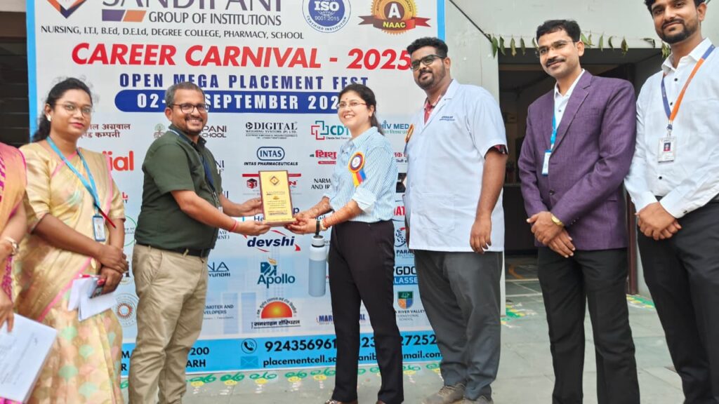 सांदीपनी ग्रुप ऑफ़ इंस्टिट्युशन सदैव विद्यार्थियों को गुणवत्तापूर्वक शिक्षा के साथ साथ रोजगारपरख अवसर दिलाने के लिये प्रतिबद्ध हैं। यह “कैरियर कार्निवल 2025” सांदीपनी के विद्यार्थियों के साथ साथ समाज के रोजगार के इच्छुक विद्यार्थियों के उज्जवल भविष्य के दिशा में भी मिल का पत्थर सिद्ध होगा। कार्यक्रम के अंत में संस्था के संचालक श्री महेन्द्र चैबे, प्रशासनिक अधिकारी श्री विनीत चैबे, प्लेसमेंट प्रभारी श्री रामखिलावन साहु, नर्सिंग प्राचार्य डॉ पी.महेन्द्रवर्मन, नर्सिंग वाइस प्रिंसिपल श्रीमति आर.सेंकथीर सेल्वी, एजुकेशन प्राचार्य डॉ रीता सिंह, आई.टी.आई. प्रिंसिपल श्री सुनील प्रजापति के द्वारा नियोक्ताओं को स्मृति चिह्न प्रदान कर आभार व्यक्त किया गया। कार्यक्रम के सफल संचालन में सांदीपनी एकेडमी के सभी विभाग के शैक्षणिक एवं अशैक्षणिक सदस्यों, भूतपूर्व विद्यार्थियों एवं छात्र-छात्राओं का सक्रिय सहयोग रहा।
