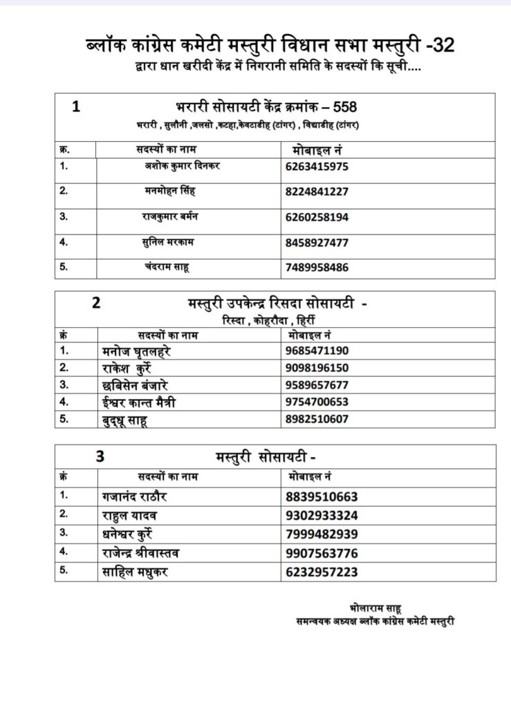 देखें सुची निगरानी समिति ब्लॉक कांग्रेस कमेटी मस्तुरी विधान सभा मस्तुरी में किसे मिले जिम्मेदारीDownload