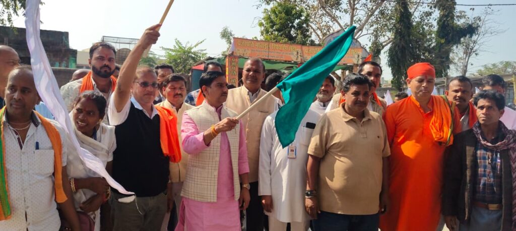 मकर संक्रांति के शुभ अवसर पर सत्य निज नाम बोध संस्थान के तत्वाधान में नशा मुक्ति जनजागरण रैली व नगर पंचायत मल्हार डिडिनेश्वरी मंदिर परिसर में एकदिवसीय सत्संग व सांस्कृतिक कार्यक्रम का आयोजन किया गया l नशा मुक्ति जन जागरण रैली का शुभारंभ मुख्य अतिथि के रूप में केंद्रीय राज्य मंत्री श्री तोखन साहू अध्यक्षता पूर्व कैबिनेट मंत्री डॉ कृष्णमूर्तिबंधी विशिष्ट अतिथि भाजपा जिला ग्रामीण के अध्यक्ष मोहित जायसवाल सम्मिलित हुए तोखन साहु ने जनजागरण रैली को हरी झंडी दिखाकर मस्तूरी जोंधरा चौक से रवाना किया रैली रवाना करने के पश्चात केंद्रीय मंत्री जी नगर पंचायत मल्हार के मां डिडिनेश्वरी मंदिर परिसर पहुंचे जहां पर भारतीय जनता पार्टी के पदाधिकारी व प्रतिनिधियों द्वारा ढोल नगाड़ों के साथ अतिशी स्वागत किया गया साहू जी ने मां डिंडेश्वरी की पूजा अर्चना कर समस्त क्षेत्र वासियों के लिए सुख समृद्धि की कामना की नगर पंचायत के अध्यक्ष धनेश्वरी धनेश्वर कैवर्त ने केंद्रीय राज्य मंत्री से नगर पंचायत मल्हार की मुख्य सड़क की चौड़ीकरण तथा नगर पंचायत मल्हार के ऐतिहासिक तालाबों के सौंदरीकरण की मांग को रखी जिसको केन्द्रीय राज्यमंत्री साहू जी ने नगर पंचायत मल्हार की धार्मिक ऐतिहासिक तथा पुरातात्विक महत्व को देखते हुए विस्तृत कार्य योजना तैयार करने के लिए अधिकारियो को निर्देशित किया