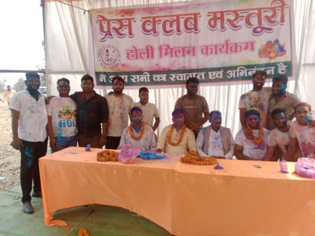 मस्तूरी। रंग पंचमी के शुभ अवसर पर मस्तूरी प्रेस क्लब द्वारा होली मिलन समारोह का भव्य आयोजन किया गया। कार्यक्रम में रंग-गुलाल, मस्ती और फिल्मी गीतों की धुन पर प्रेस क्लब के सदस्य जमकर झूमे और होली के उत्सव का भरपूर आनंद लिया। समारोह में उपस्थित अतिथियों ने भी कार्यक्रम में शामिल होकर खुशियों के इस पर्व को मिल-जुलकर मनाया और सभी को होली की बधाई एवं शुभकामनाएं दीं।