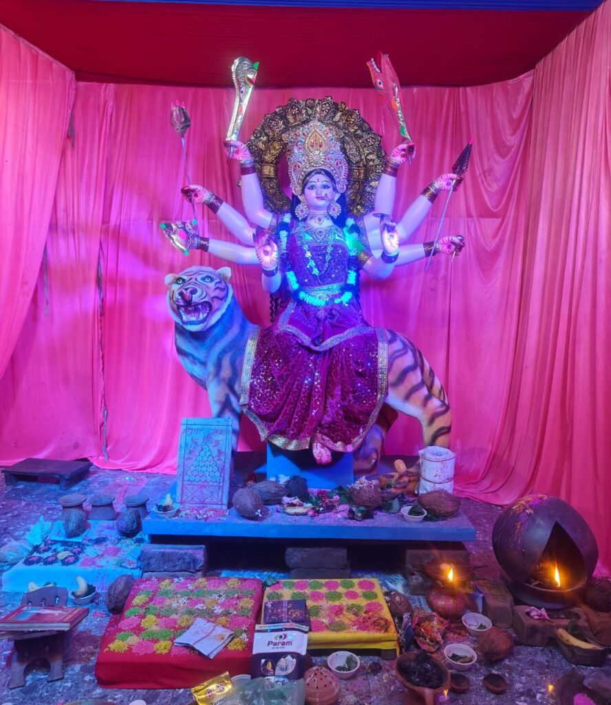 दुर्गे की प्रतिमा विराजित कर विधि विधान से पूजा अर्चना किया जा रहा है।