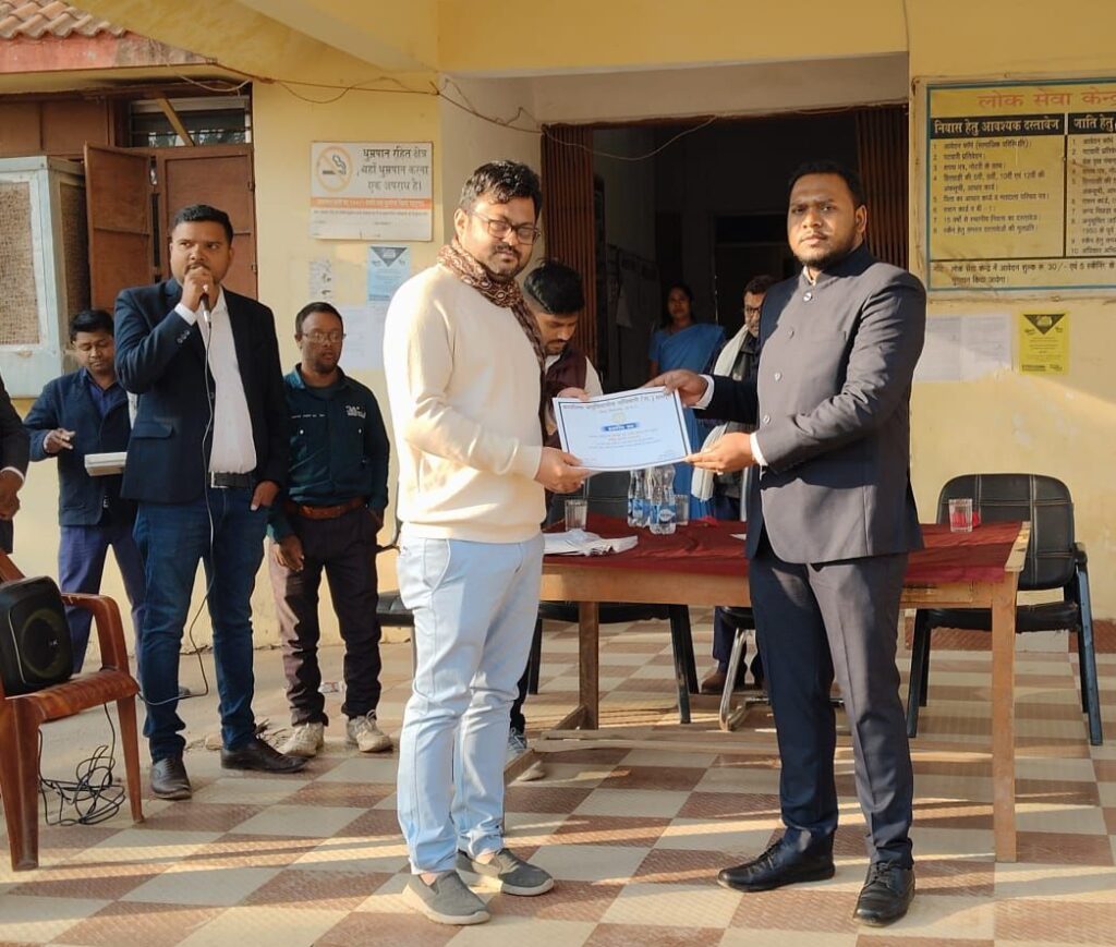 जिसमें कार्यालय में पदस्थ स्टोनो डी आर साहू, कानूनगो शाखा प्रभारी हरीश कुर्रे,पटवारी राजकमल चंद्राकर, प्रमोद कौशिक, कविश तिवारी, सहायक ग्रेड-2नंदनी ध्रुव,सहायक ग्रेड-3 नीलेश सिदार, सुशील कैवर्त, निर्वाचन शाखा के डॉ.ए.आर. भृत्य कांति राठौर, कोटवार मोहर दास,दीपक दास,पंच कुमार सुमन, चंद्र कुमार मानिकपुरी आदि कर्मचारियों को प्रशस्ति पत्र देकर सम्मानित किया गया, कार्यक्रम में मंच संचालन पटवारी धीरज मिश्रा ने किया।