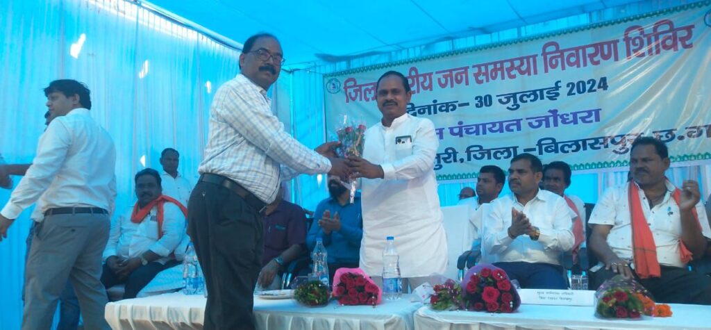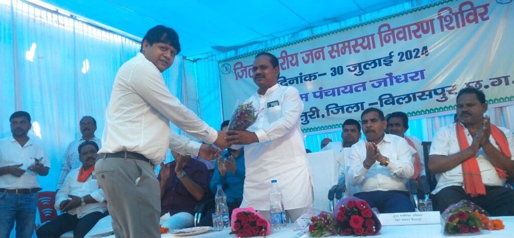 मस्तूरी । जनपद पंचायत क्षेत्र के ग्राम पंचायत जोंधरा के हाई स्कूल मेैदान में शिविर आयोजित किया गया, शिविर में ग्रामीणों की मांग और शिकायतों से संबंधित 168 आवेदन मिले, इनमें से मौके पर ही 121 आवेदनों का निराकरण किया गया। जन समस्या समस्या निवारण शिविर में आए हुए ग्रामीणों ने सबसे अधिक राजस्व विभाग और बिजली विभाग एवं शिक्षा विभाग की समस्या को लेकर ज्यादा संख्या में पहुंचे हुए थे,