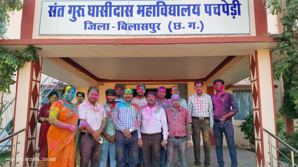 मस्तूरी संत गुरुघासीदास महाविद्यालय में होली मिलन समारोह बड़ी धूम धाम से मनाया गया, एक दूसरे को अबीर-गुलाल लगाकर होली की बधाई एक दूसरे को दी गई ,इस दौरान प्राचार्य डॉ रविन्द्र जायसी ने कहा कि होली का त्यौहार आपसी भाईचारे और प्रेम का संदेश देता है हमें रंगों के इस पर्व को मिल-जुलकर मनाना चाहिए और प्रेम एवं सद्भावना का परिचय देना चाहिए रंगों के त्योहार होली को लेकर बड़े उत्साह पूर्वक मनाना चाहिए। उक्त कार्यक्रम में महाविद्यालय स्टाप के सभी कर्मचारी अधिकार उपस्थित रहे।