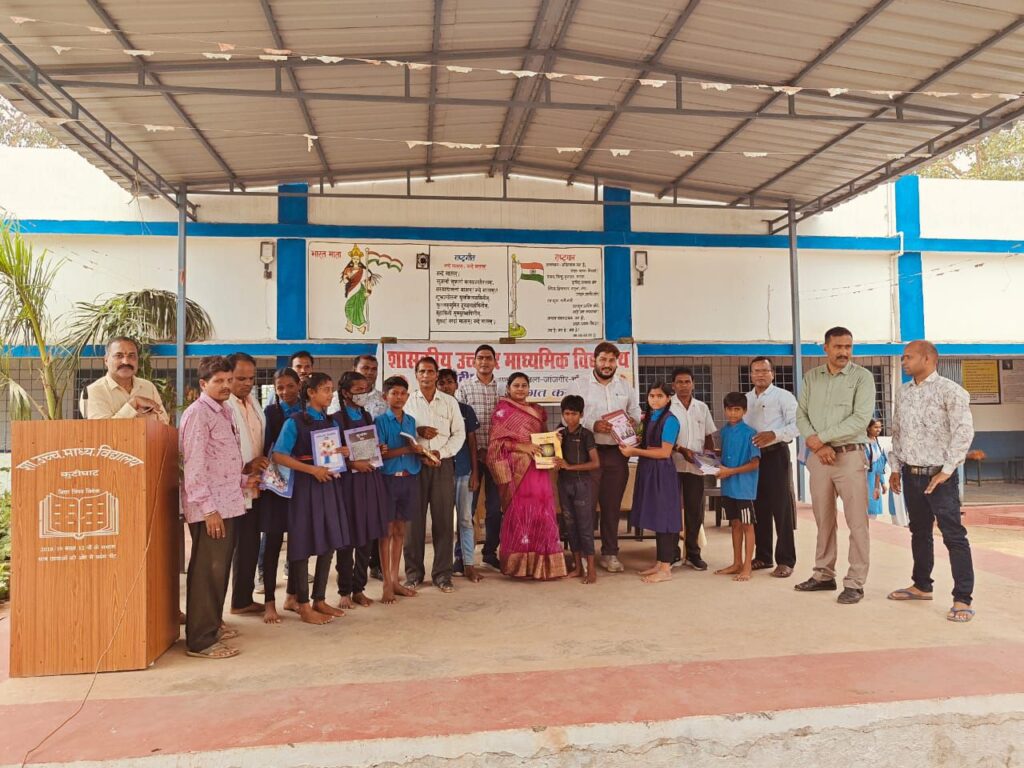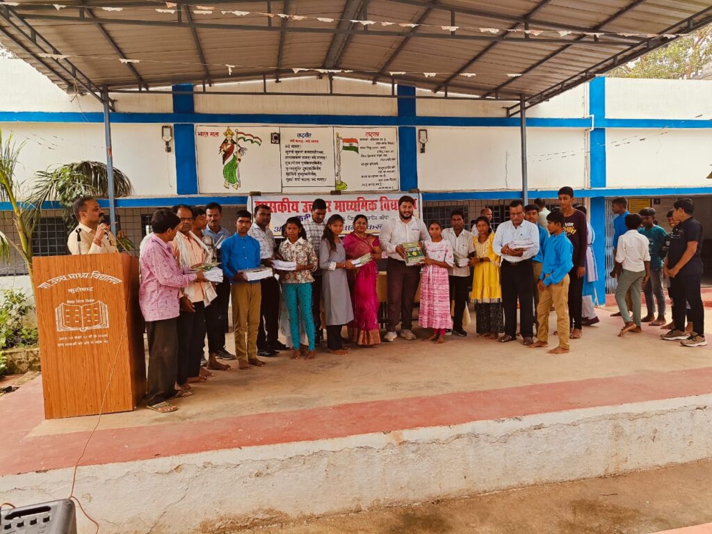 दुर्गेश साहू,गायत्री सिंह चंदेल, जयप्रकाश कश्यप, योगेश सिंह चंदेल, निखिल साहू,संजय यादव,राकेश कुमार, वंदना घृतलहरें, शेखर कोसले आरती गोंड सुमन श्रीवास, पायल कश्यप,राहुल, प्रीति साहू, प्राची पटेल,गौरी मरावी,सुनीता धीवर छात्र-छात्राओं का सम्मान किया गया एवं अतिथियों के द्वारा बच्चों को मिठाई चॉकलेट के साथ पुस्तक कॉपी वितरण किया गया इस अवसर पर मुख्य अतिथि ने कहा कि शासन द्वारा निशुल्क गणेश पुस्तक दी जा रही है जिसे हर कोई लाभ ले और कोई भी पढ़ाई से वंचित ना हो इस दौरान सन्नी यादव जनपद सदस्य प्रतिनिधि,विजय कश्यप, संतोष कश्यप,अशोक पटेल, लक्ष्मी साहू, संजय सिंह चंदेल,प्राचार्य आर के नौरंगें दीपेंद्र कुमार पांडेय, उदयपाल सिंह बैस,अमित शर्मा, विजय कुमार तिवारी, श्रीमती आभा देशपांडे,श्रीमती सावित्री सिग यादव ,श्रीमती अंजना बघेल, श्रीमती सुषमा शर्मा,शहाना बेगम,श्रीमती नीलिमा पांडेय, प्रफुल साहू, दिलीप कुमार साहू निलेश फरवी,एवं शिक्षक शिक्षिका व गणमान्य नागरिक उपस्थित रहे।