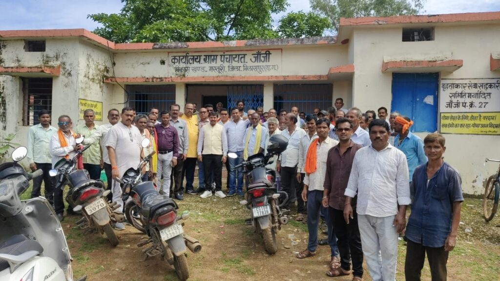 जांजी। मस्तूरी विधानसभा के अंतर्गत ग्राम पंचायत जांजी में किसानों को समय पर खाद मिल रहा है या नहीं, इसकी हकीकत जानने भाजपा अ.जा. मोर्चा के जिला अध्यक्ष चंद्रप्रकाश सूर्या ने निरीक्षण दौरा किया। इस दौरान उन्होंने गांव के स्कूल का भी भ्रमण किया और बच्चों से बातचीत कर स्कूल संचालन की जानकारी ली। निरीक्षण के दौरान सूर्या ने स्कूल परिसर में दिखी कुछ अव्यवस्थाओं को जल्द दूर करने के निर्देश दिए। प्राचार्य ज्योति तिर्की से स्कूल की साफ-सफाई और अन्य व्यवस्थाओं के बारे में भी चर्चा की।